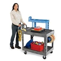 Do you like RUBBERMAID Heavy-Duty Tray-Shelf Carts - Gray Ships unassembled to save freight costs-universal uprights make set up quick and easy. RUBBERMAID Heavy-Duty Tray-Shelf Carts handle both industrial and commercial loads. Structural foam construction includes a leakproof top with rounded corners to protect walls, furniture, and equipment. Ergonomically shaped handle includes cord hooks, a drill/mallet rest, and tool slots. The top shelf has two V-notches to hold long tubes in place. Legs are punched with 3/4" dia. holes to thread rods through for storing rolled material or reels. Lightweight and easy to maneuver on 2 fixed and 2 swivel non-marking casters. Optional lockable center ... » More Information about RUBBERMAID Heavy-Duty Tray-Shelf Carts - Gray.